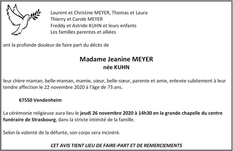 Décédée à Vendenheim (67550, France) le dimanche 22 novembre 2020 à l'âge de 73 ans