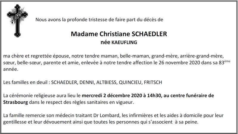 Madame Christiane SCHAEDLER née KAEUFLING