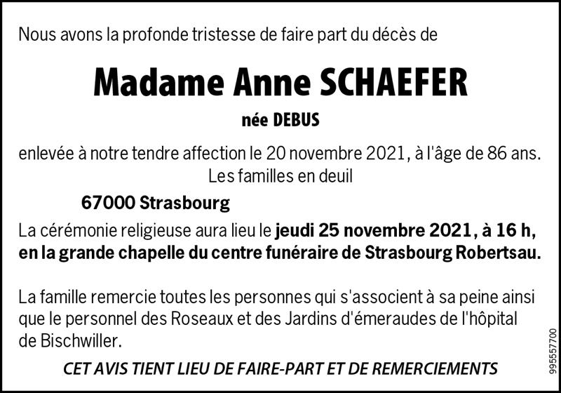 Veuve de Monsieur Gérard Charles SCHAEFER