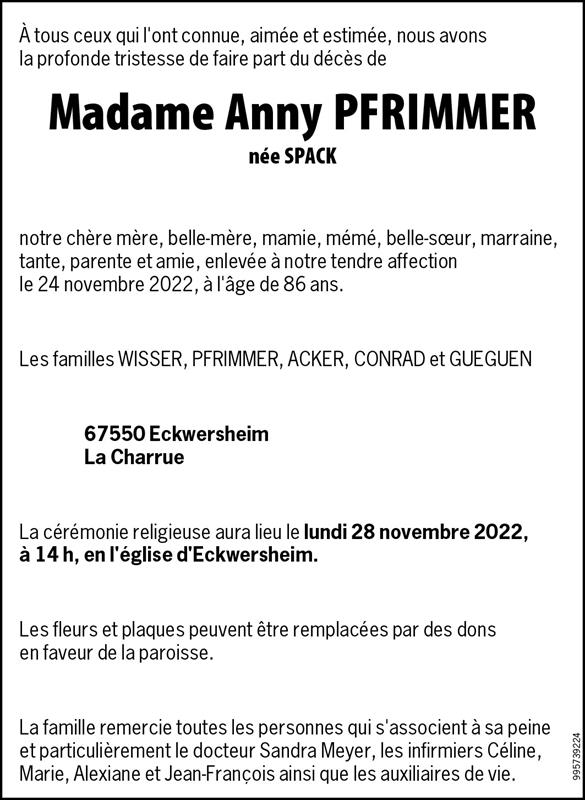 Veuve de Monsieur Ernest Michel PFRIMMER