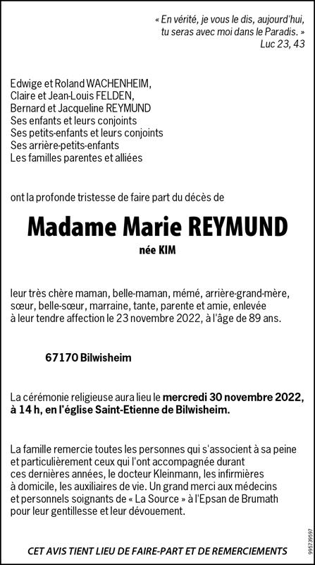 Veuve de Monsieur Cyrille Antoine Eugène REYMUND