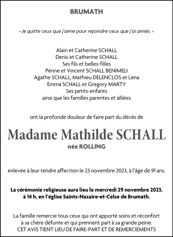 Décédée à Haguenau (67500, France) le jeudi 23 novembre 2023 à l'âge de 91 ans