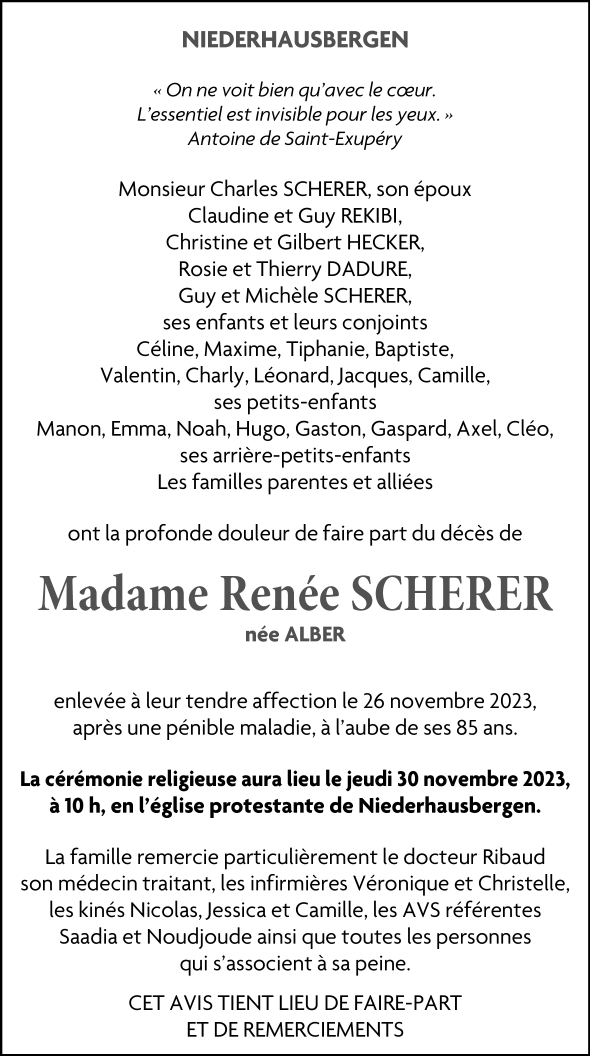 Décédée à Niederhausbergen (67207, France) le dimanche 26 novembre 2023 à l'âge de 84 ans