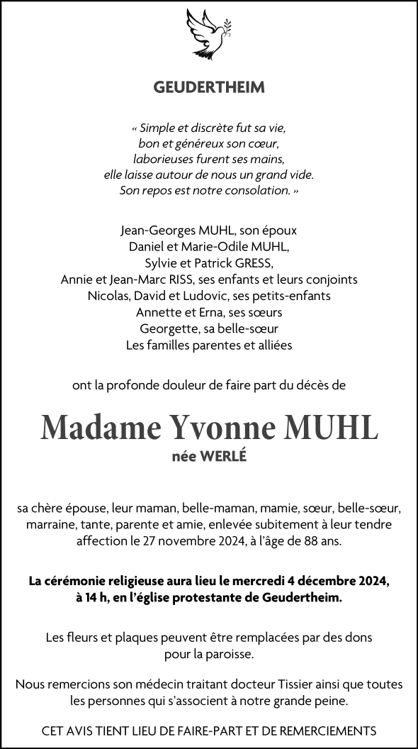 Madame Yvonne MUHL née WERLÉ