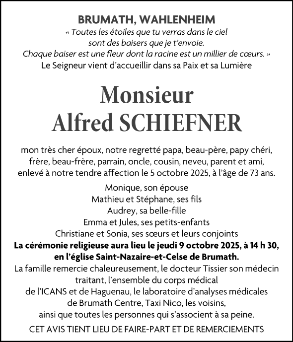 Décédé à Haguenau (67500, France) le dimanche 5 octobre 2025 à l'âge de 73 ans