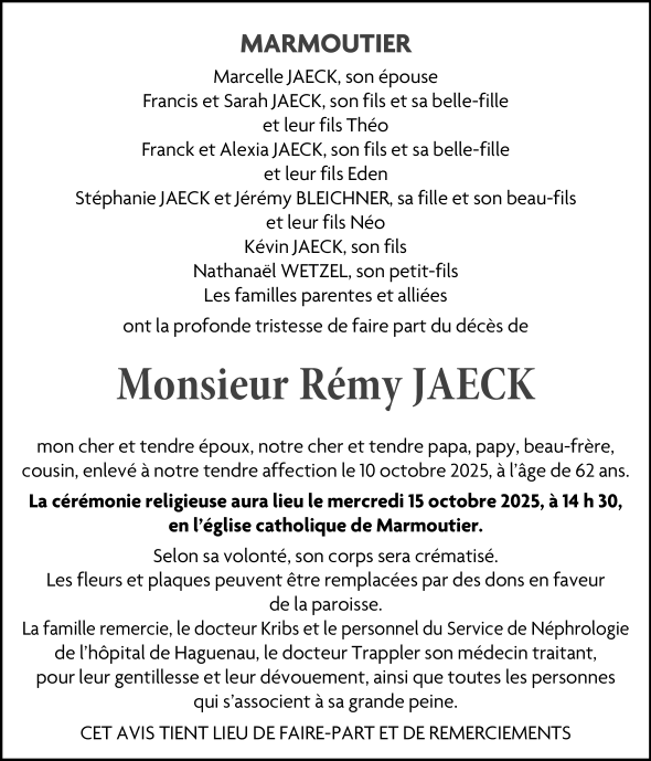 Décédé à Haguenau (67500, France) le vendredi 10 octobre 2025 à l'âge de 62 ans