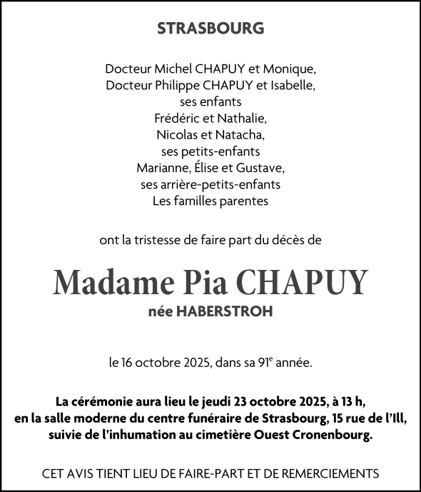 Madame Pia Suzanne CHAPUY née HABERSTROH
