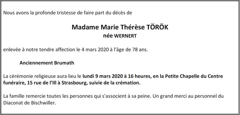 Madame Marie Thérèse TÖRÖK née WERNERT