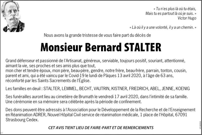 Décédé à Strasbourg (67000, France) le lundi 13 avril 2020 à l'âge de 63 ans