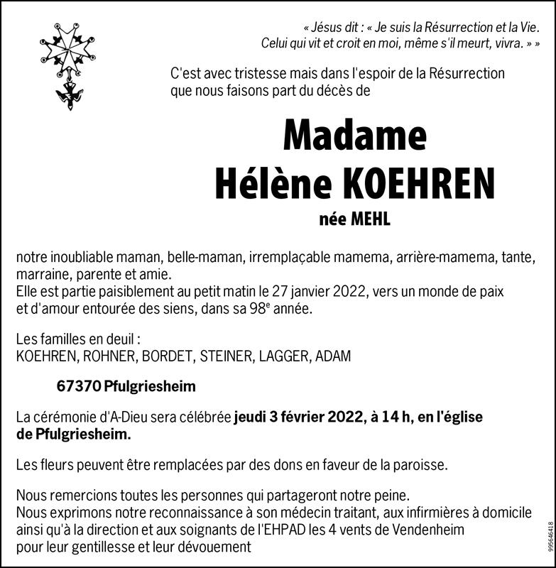 Madame Hélène KOEHREN née MEHL