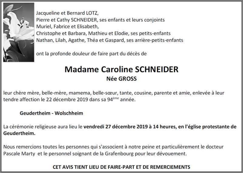 Veuve de Monsieur Charles Jacques SCHNEIDER