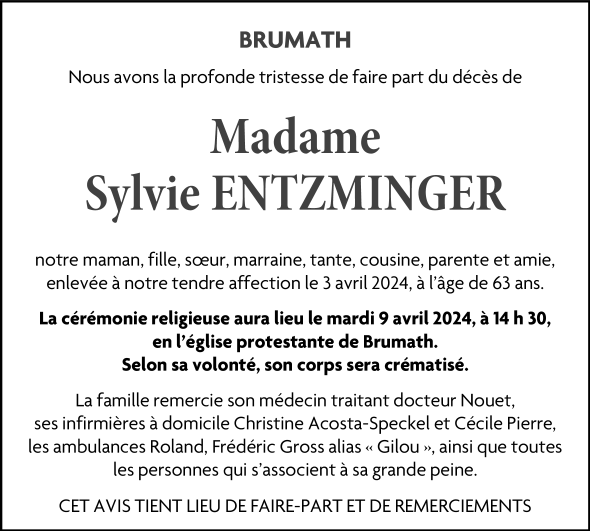 Décédée à Strasbourg (67000, France) le mercredi 3 avril 2024 à l'âge de 63 ans