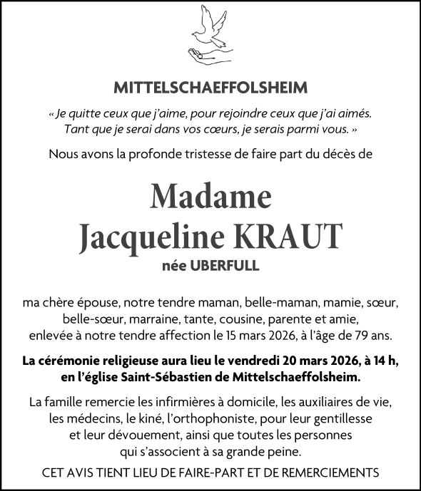 Madame Jacqueline KRAUT née UBERFULL