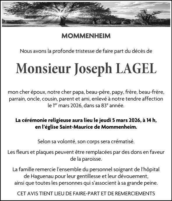 Décédé à Haguenau (67500, France) le dimanche 1 mars 2026 à l'âge de 82 ans