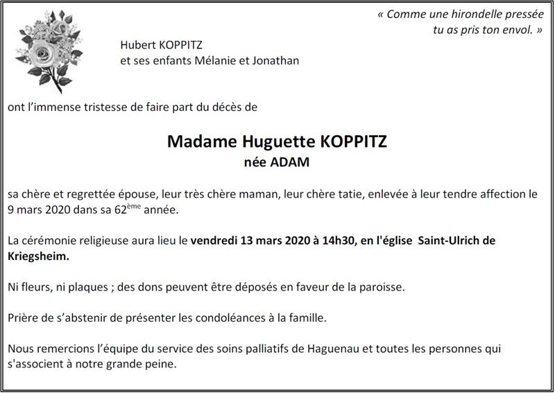 Madame Huguette KOPPITZ née ADAM