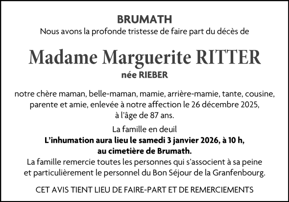 Décédée à Brumath (67170, France) le vendredi 26 décembre 2025 à l'âge de 87 ans