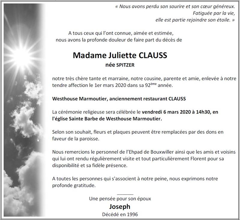 Décédée à Bouxwiller (67330, France) le dimanche 1 mars 2020 à l'âge de 91 ans