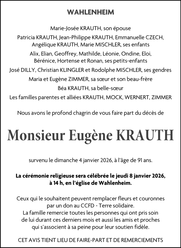 Décédé à Haguenau (67500, France) le dimanche 4 janvier 2026 à l'âge de 91 ans