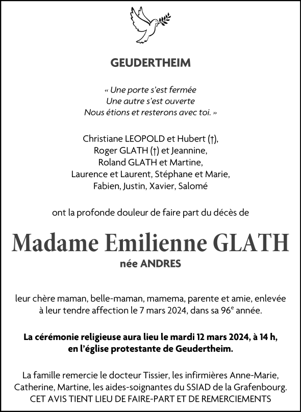 Madame Emilienne Salomé GLATH née ANDRES
