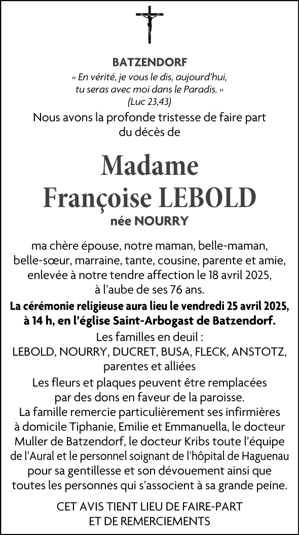 Epouse de Monsieur François Joseph LEBOLD