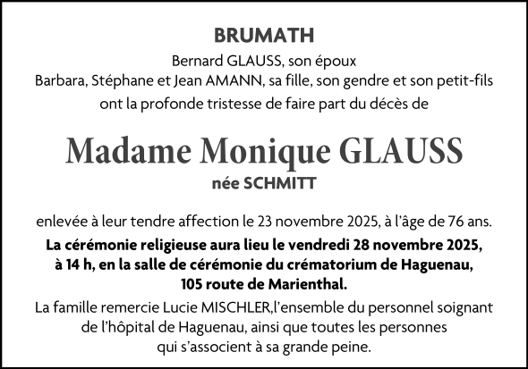 Madame Monique Jacqueline GLAUSS née SCHMITT