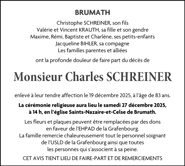 Décédé à Brumath (67170, France) le vendredi 19 décembre 2025 à l'âge de 83 ans