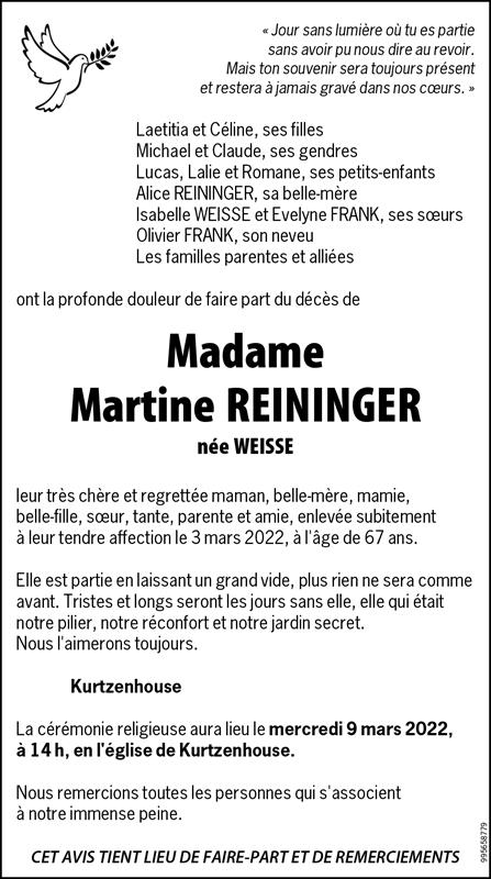 Madame Martine REININGER née WEISSE