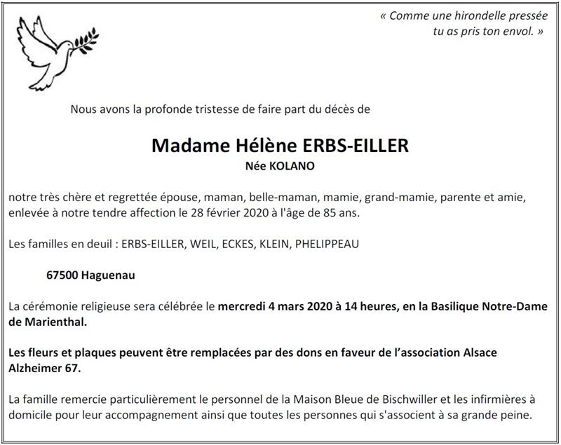 Madame Hélène ERBS-EILLER née KOLANO