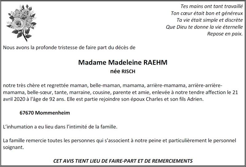 Madame Madeleine RAEHM née RISCH