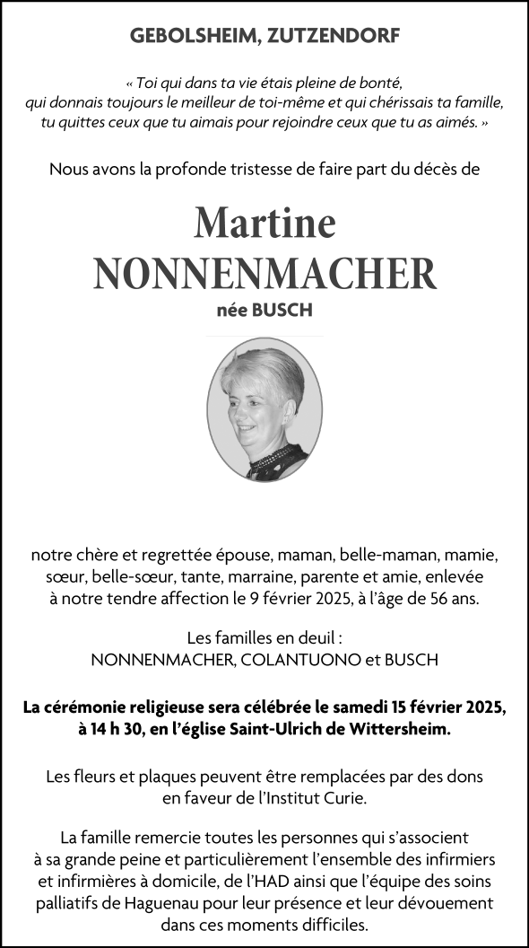 Madame Martine Betty NONNENMACHER née BUSCH
