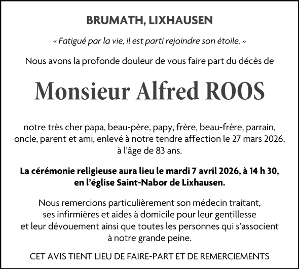 Décédé à Brumath (67170, France) le vendredi 27 mars 2026 à l'âge de 83 ans