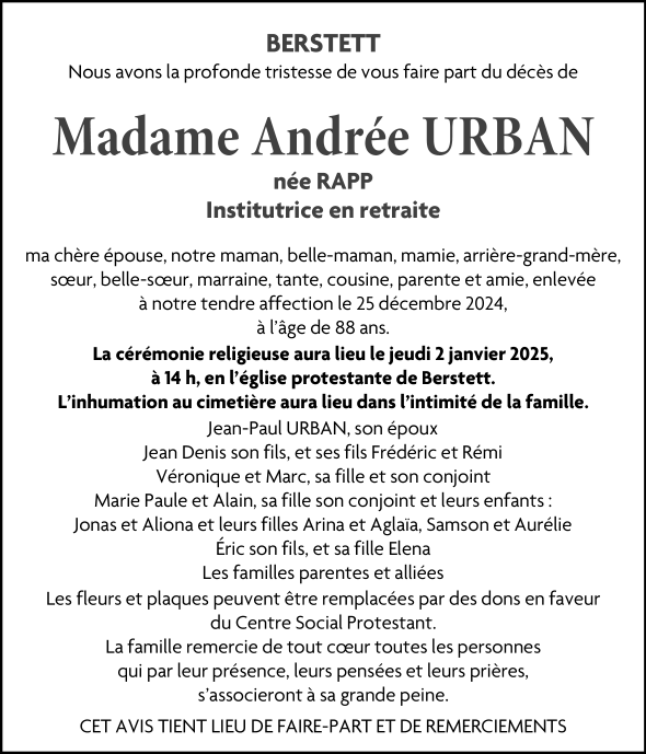 Décédée à Brumath (67170, France) le mercredi 25 décembre 2024 à l'âge de 88 ans
