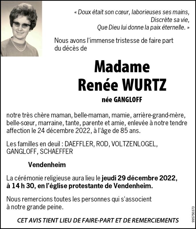 Madame Renée Jacqueline WURTZ née GANGLOFF