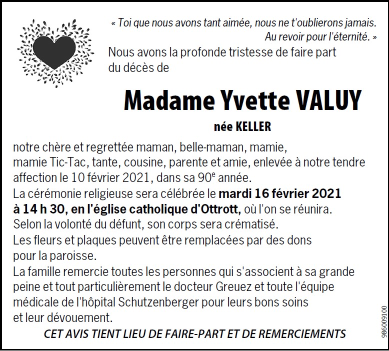 Madame Yvette VALUY née KELLER
