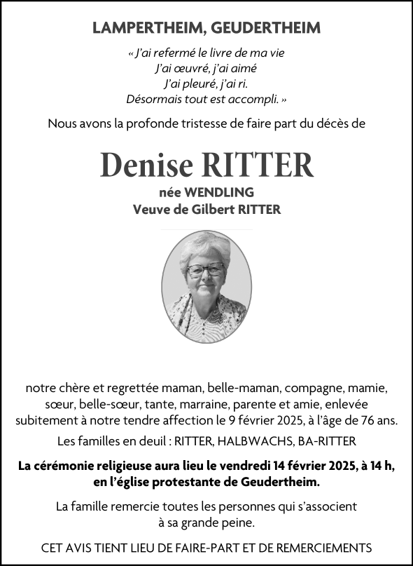 Madame Denise Marie RITTER née WENDLING