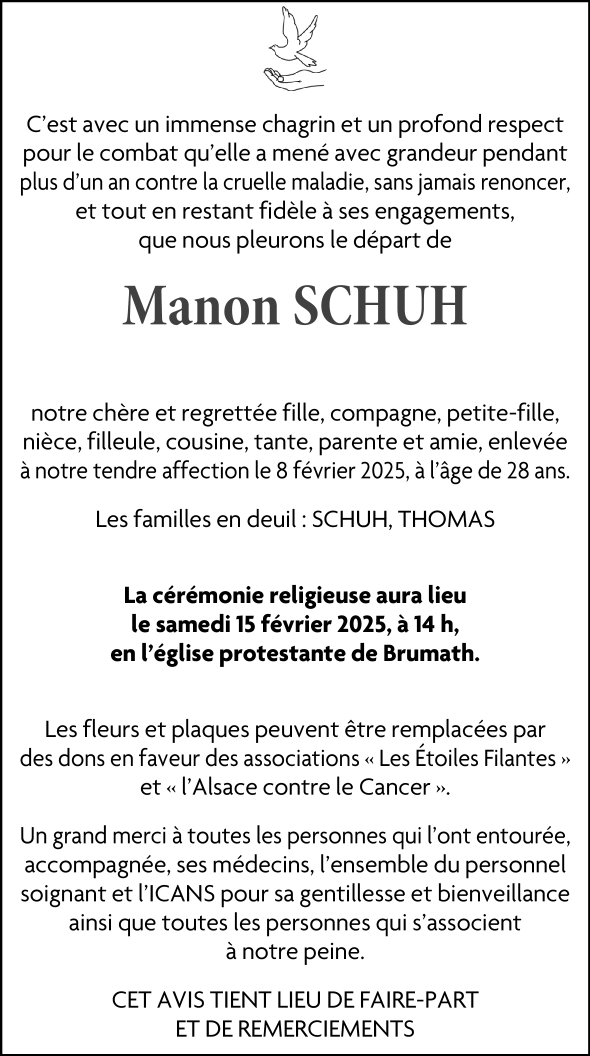 Décédée à Strasbourg (67100, France) le samedi 8 février 2025 à l'âge de 28 ans