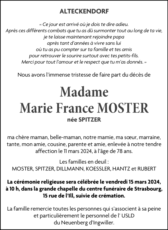 Madame Marie France Micheline MOSTER née SPITZER