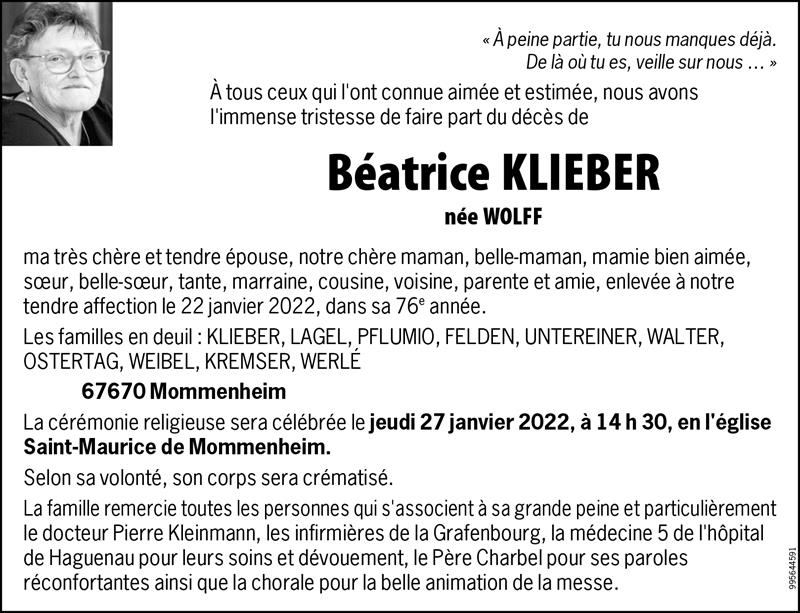 Madame Béatrice KLIEBER née WOLFF