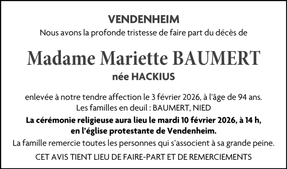 Décédée à Strasbourg (67000, France) le mardi 3 février 2026 à l'âge de 94 ans