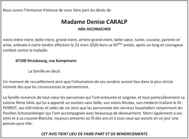 Madame Denise CARALP née ASCHBACHER