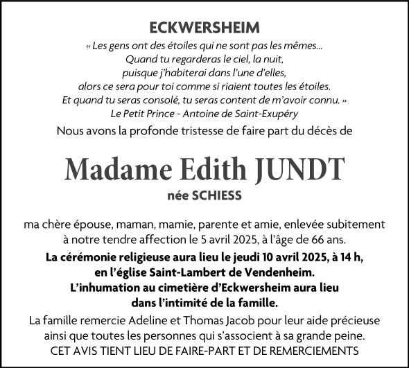 Décédée à Eckwersheim (67550, France) le samedi 5 avril 2025 à l'âge de 66 ans