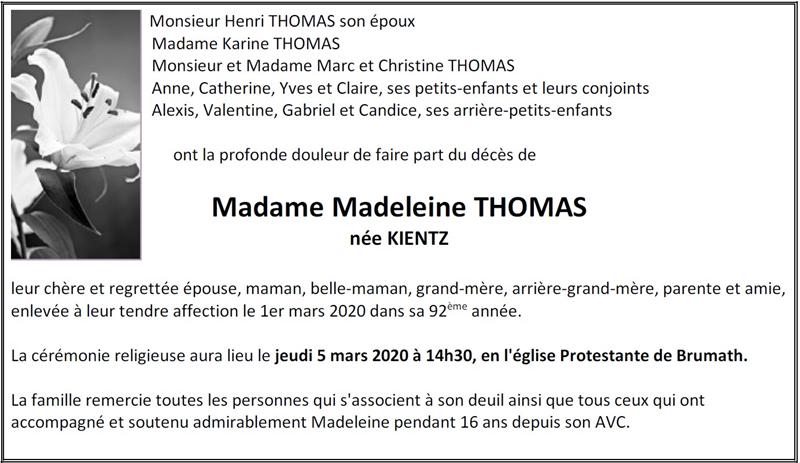 Madame Madeleine THOMAS née KIENTZ