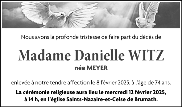 Décédée à Haguenau (67500, France) le samedi 8 février 2025 à l'âge de 74 ans