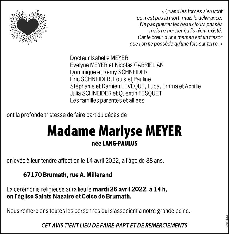 Madame Marlise MEYER née LANG-PAULUS